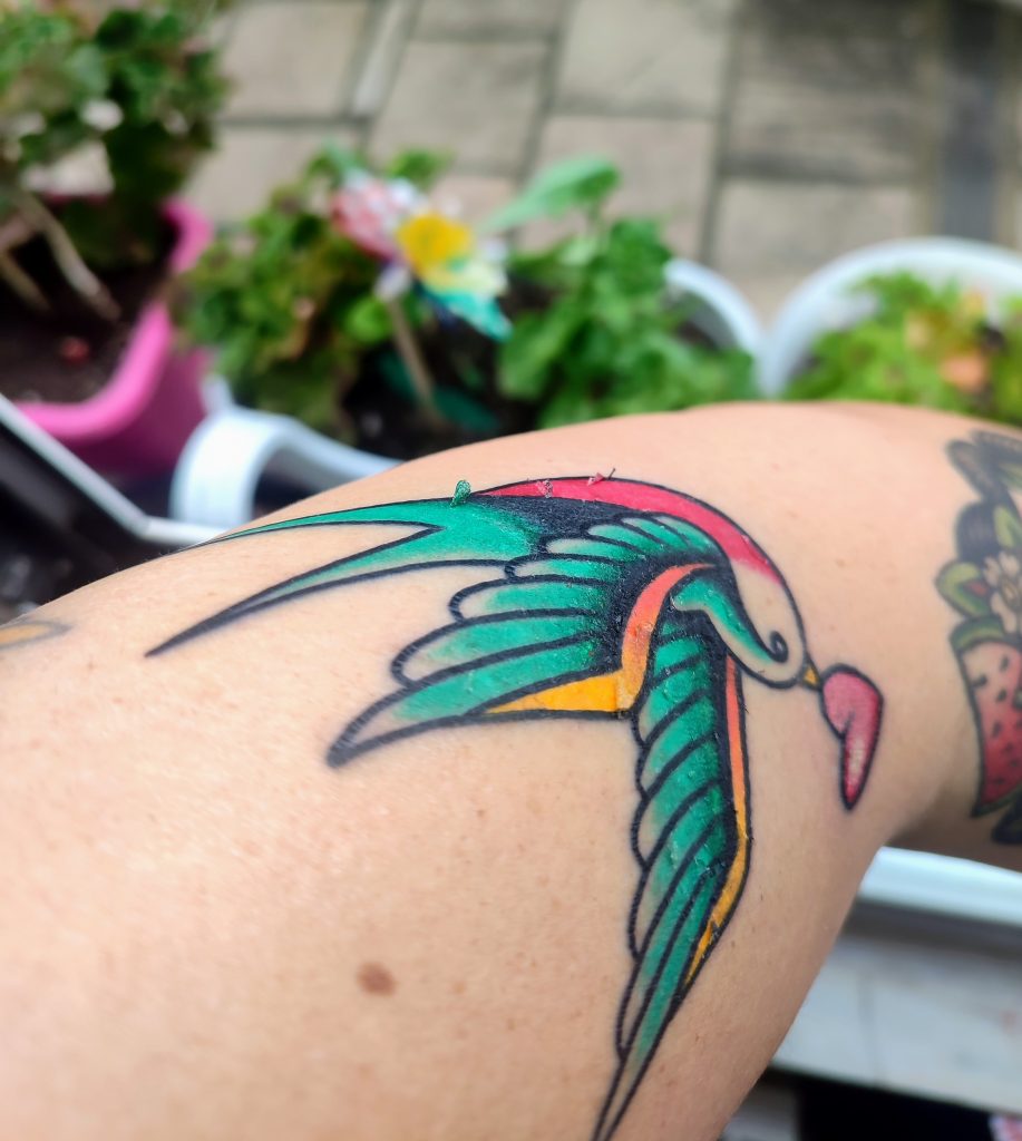 Del tatuaje que me hice por mi cumple, la única parte que no se ha curado del todo es el corazón que lleva la golondrina. Tú fíjate. Lo demás estaba ready a los pocos días. Y hoy mientras hacía prensa con más peso del que, seguramente debería, estaba pensando, que movida! que alegoría! esto me ha pasado siempre en la vida real joder! Pues me sigue flipando cada vez que me doy cuenta.